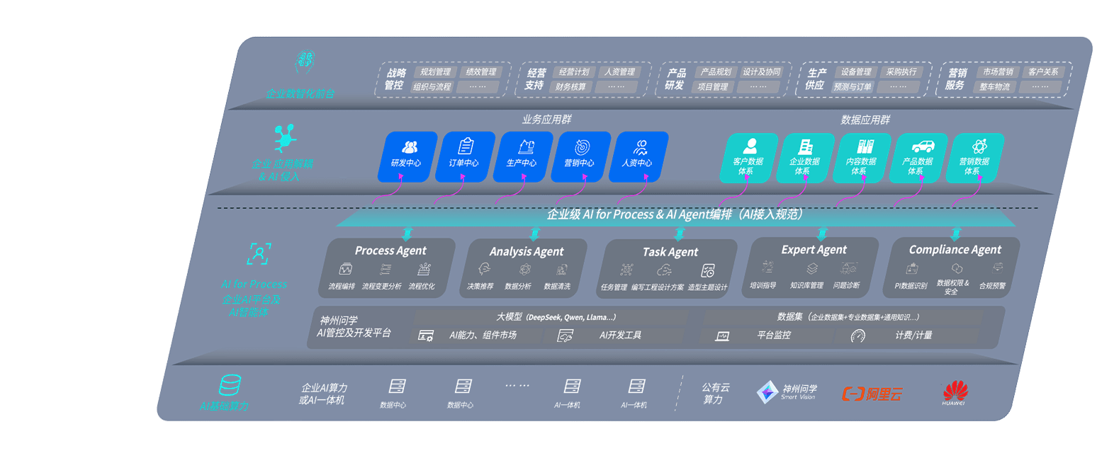恒行5问学智车解决方案是一套基于AI技术的汽车行业智能化系统,,,,覆盖从底层算力到顶层AI应用的全栈方案。。。方案由算力层、、、模型层和应用层组成:算力层,,,方案支持多种一体机配置,,,具备云端灵活部署、、、多云适配以及动态优化计算资源的能力;模型层,,,恒行5问学平台版提供了企业级AI应用一站式构建与管理平台,,支持基于后训练强化技术的汽车企业专属模型的训练、、、、评测和运营;应用层,,,恒行5问学DeepSeek版提供包括超级员工、、智能招采、、智能营销、、、、智能客服、、、AI for BI等一系列解决方案,,,可助力汽车行业实现数字化转型,,让管理更智能、、响应更敏捷。。